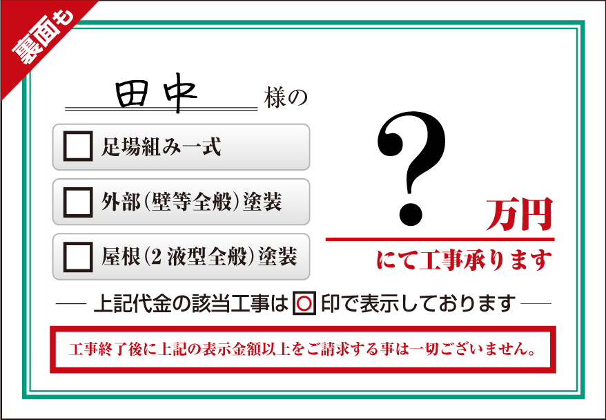 ご案内申し上げております提示の工事代金以上のご請求をする事は一切ございません